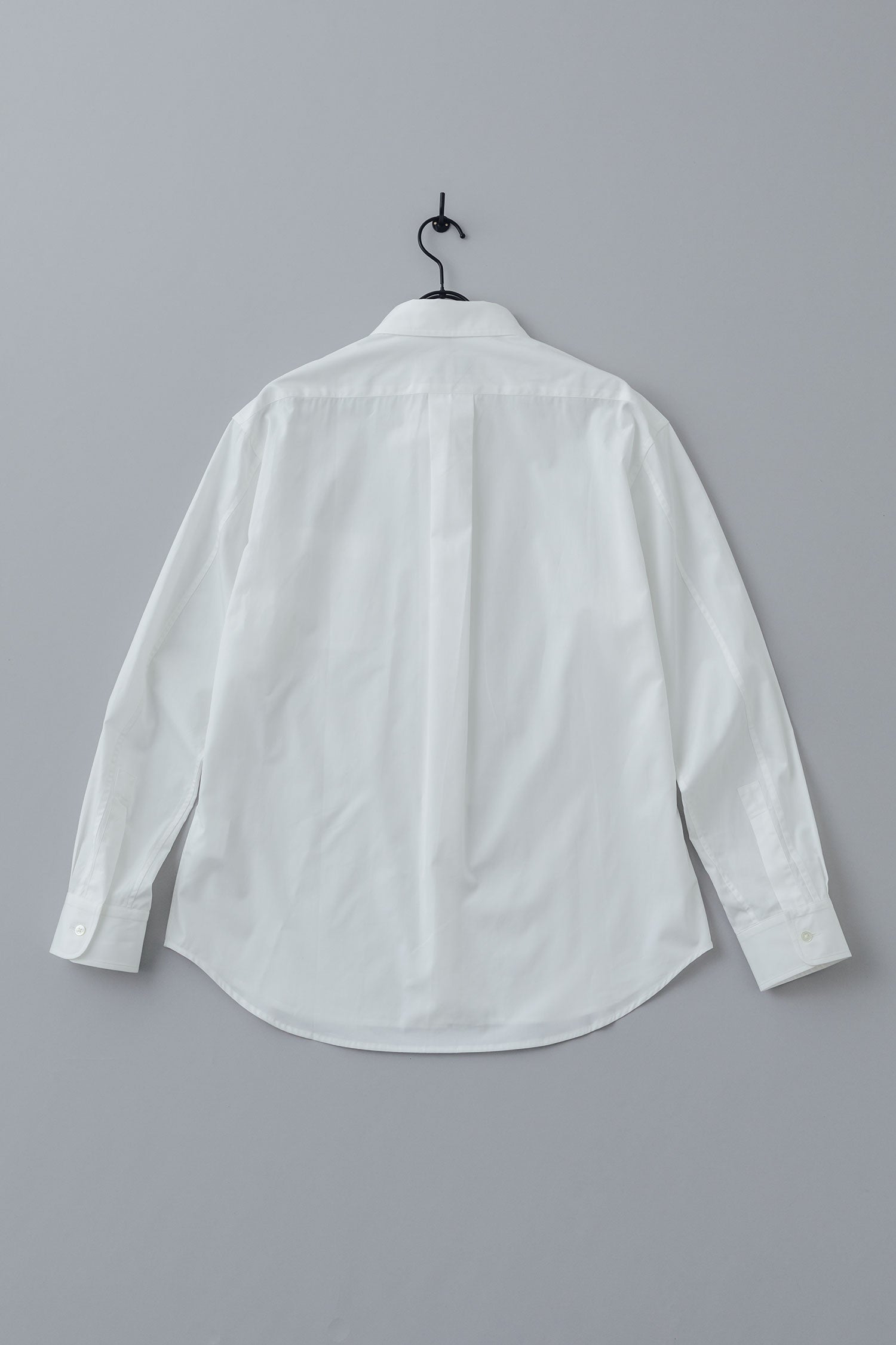 ボタンは、滑りにくく留めやすい貝ボタンを使っています。熱に強いので、アイロン掛けで傷む心配がありません。ハリのある襟がキリッとした印象を与えます。