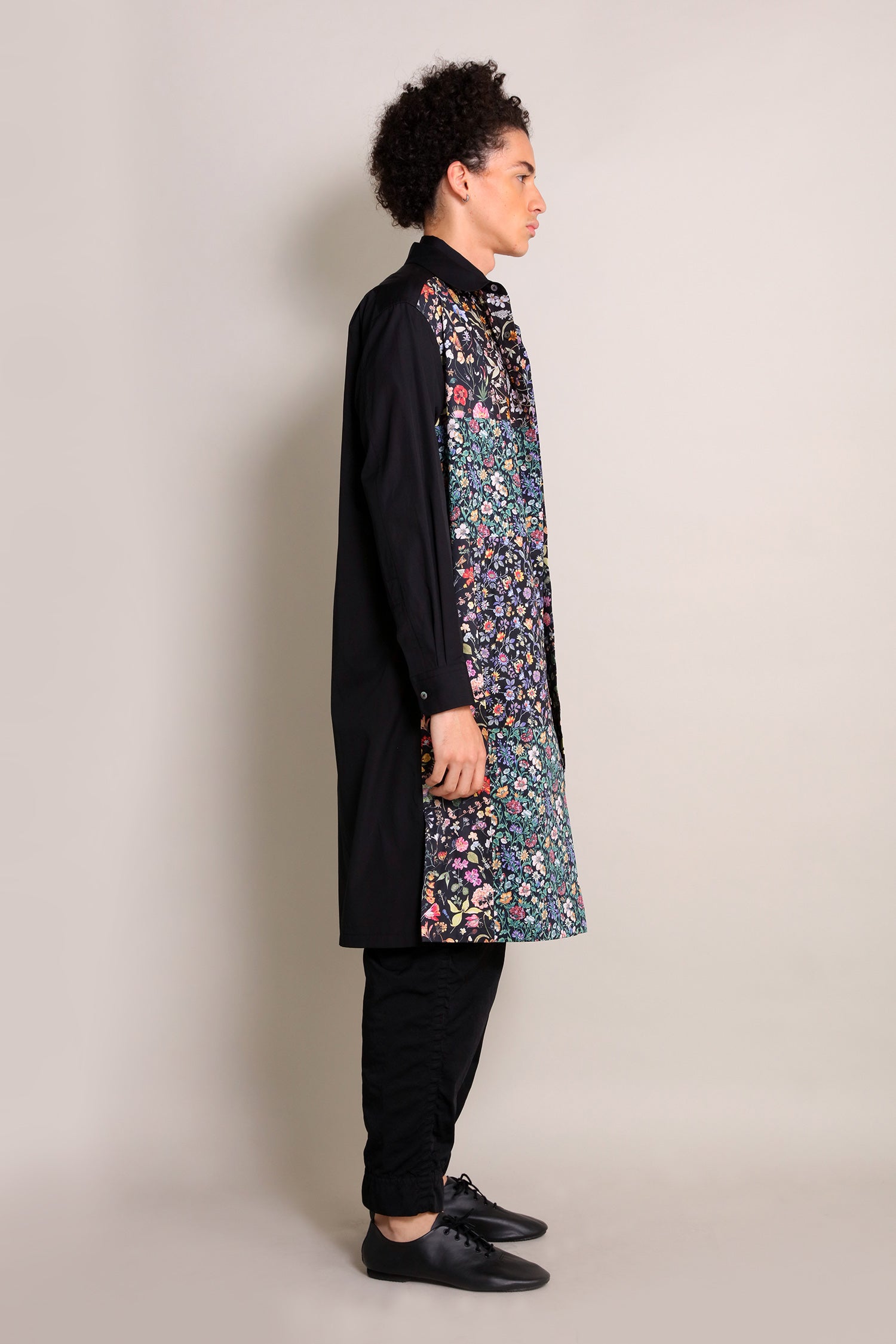 花柄のパッチワークをあしらった半袖シャツと、シャツコートのセットです。