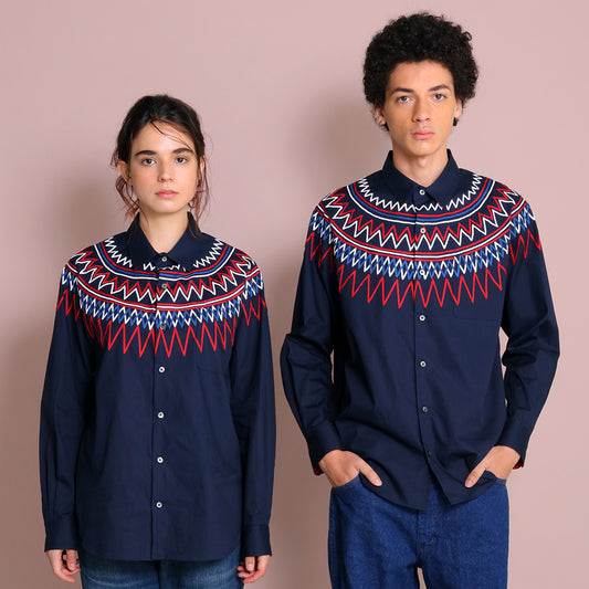 Tropopause December 2021 shirt "NAVYS". 3 Attention is a special navy shirt only for this month that makes use of advanced craftsmanship. I expressed the Nordic pattern with a ribbon.