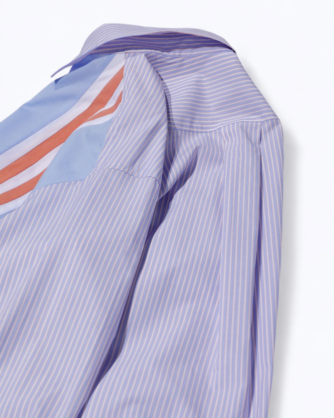 大小のストライプが魅力のパッチワークシャツ。