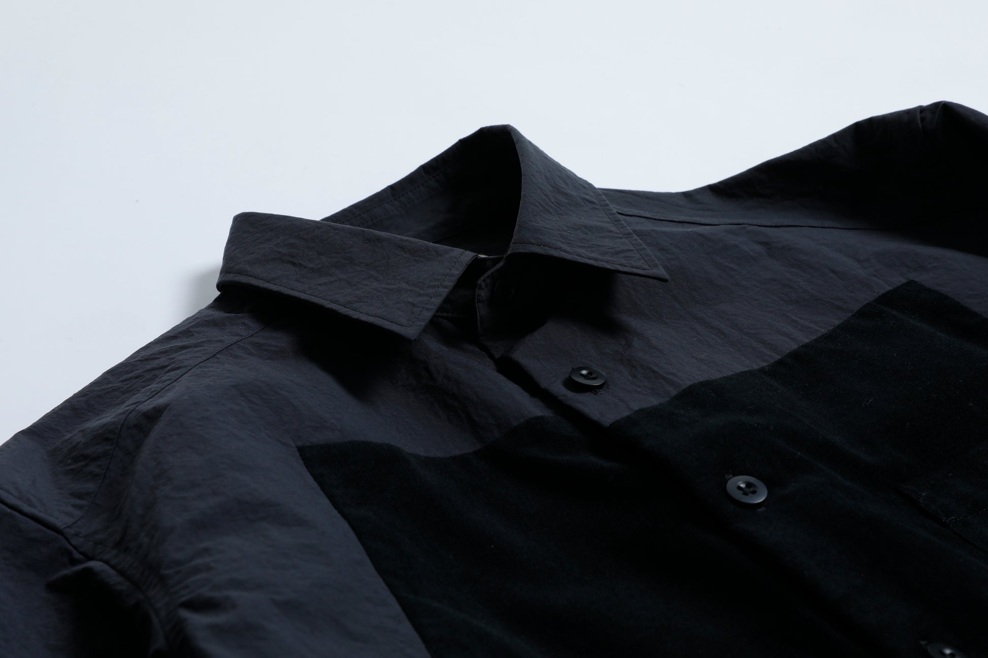 塩縮ナイロン×シャツコーデュロイのアウターにもなるカジュアルなシャツ。