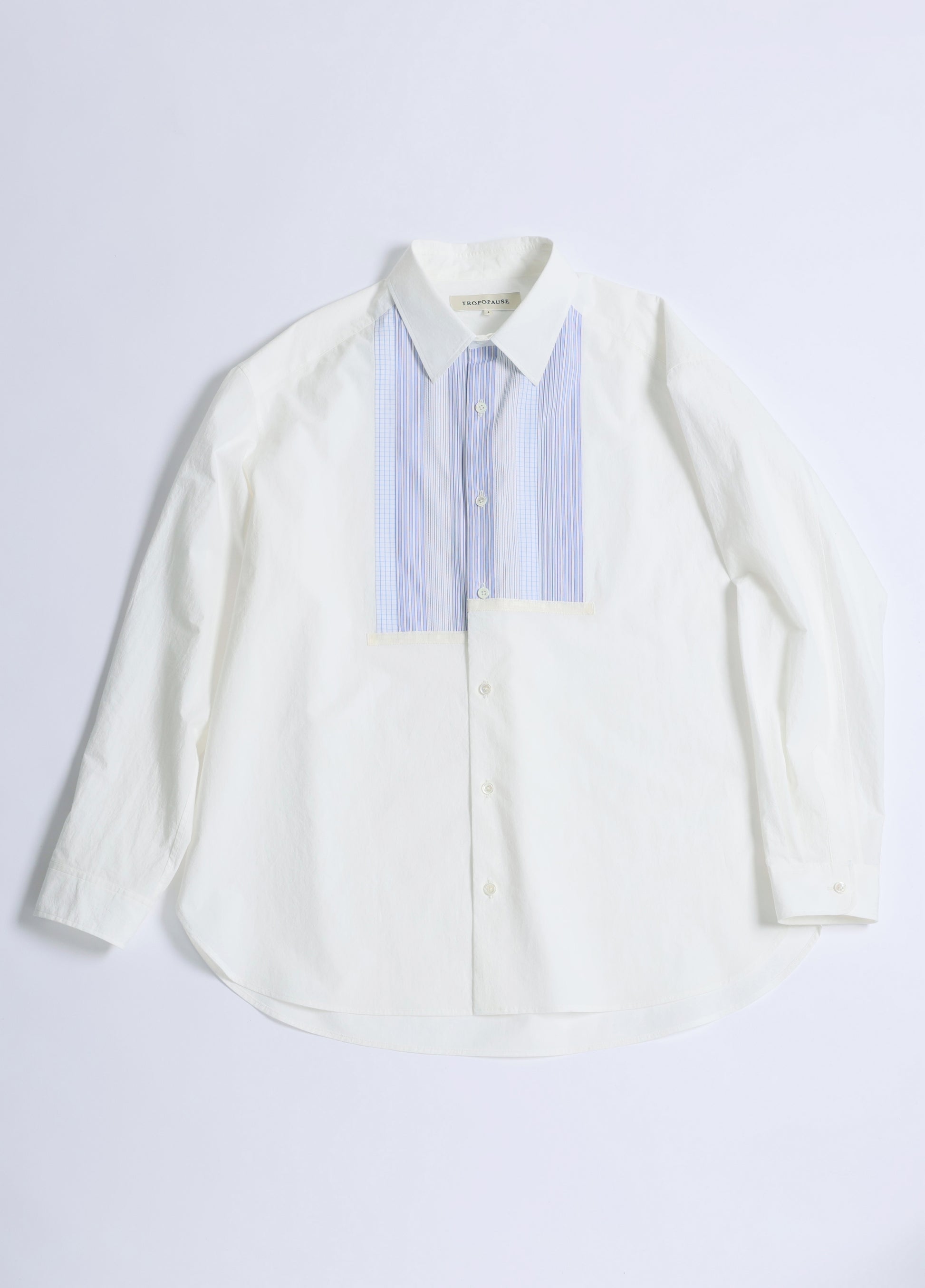 縦はぎパッチワークのすっきりとしたボザムシャツです。