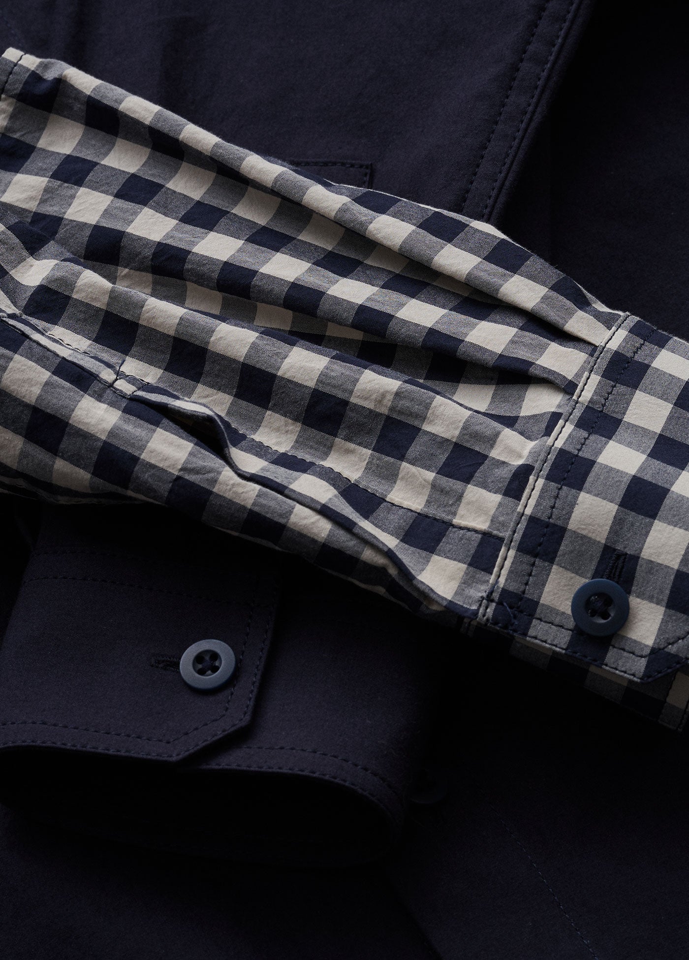 カラーは、合わせやすいネイビーとブルーグレーの2色。できる限り主張を省いたシンプルな形なので、どなたにもおすすめ。しっかりとした厚めの微起毛の高密度コットンなので、ボタンを開けてアウターとしても、シャツとしても、これからの季節に1着あると重宝します。