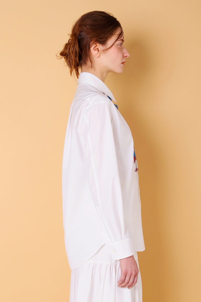 幾何学模様のパッチワークを施したデザインシャツです。