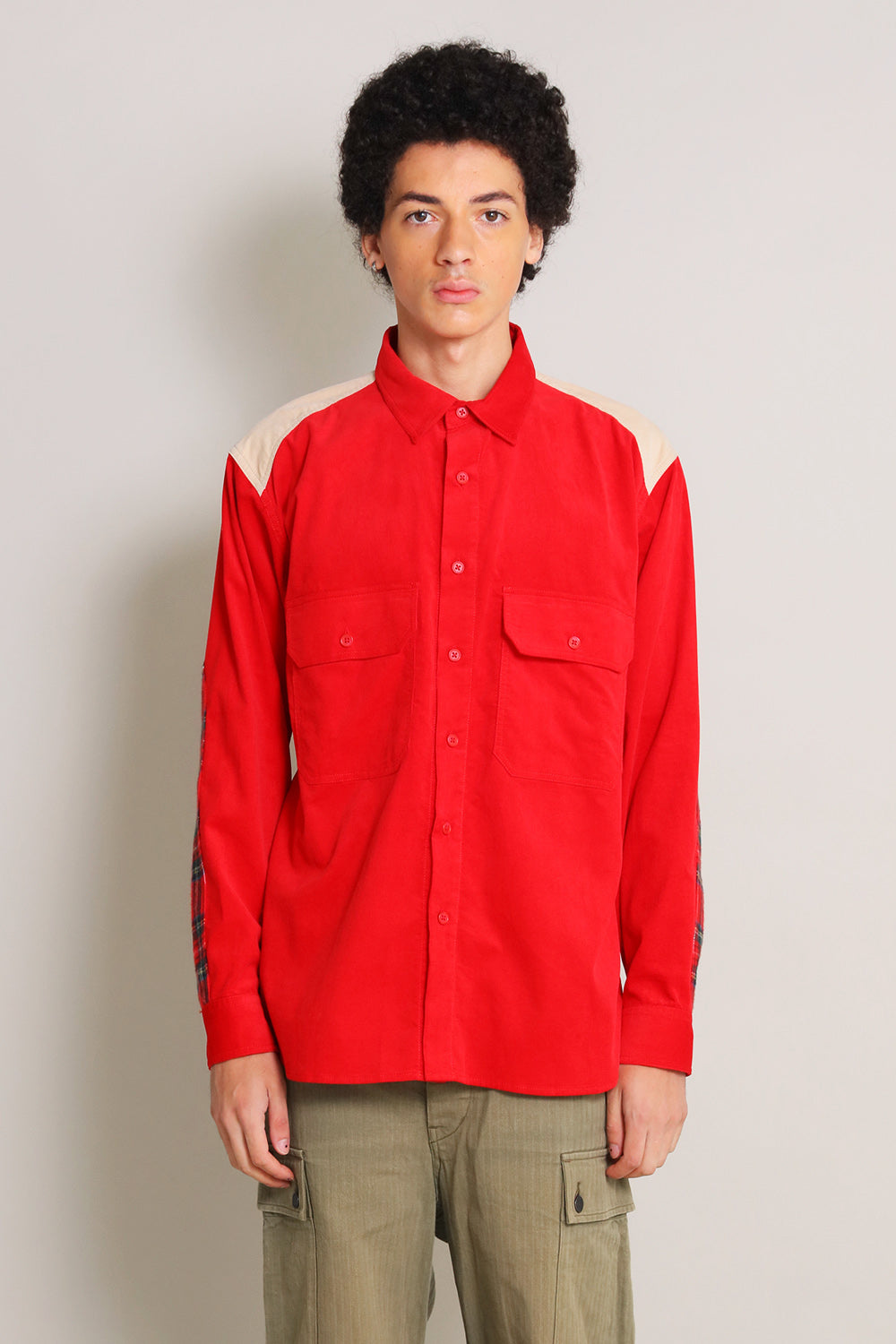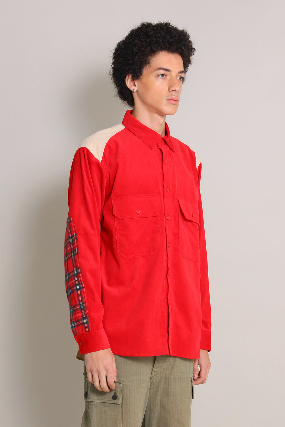 ワークウェアへのオマージュから生まれた「WORKERS コーデュロイ」。重心を落とした大きめのポケット、発色の良い2色のコーデュロイが個性的なシャツです。