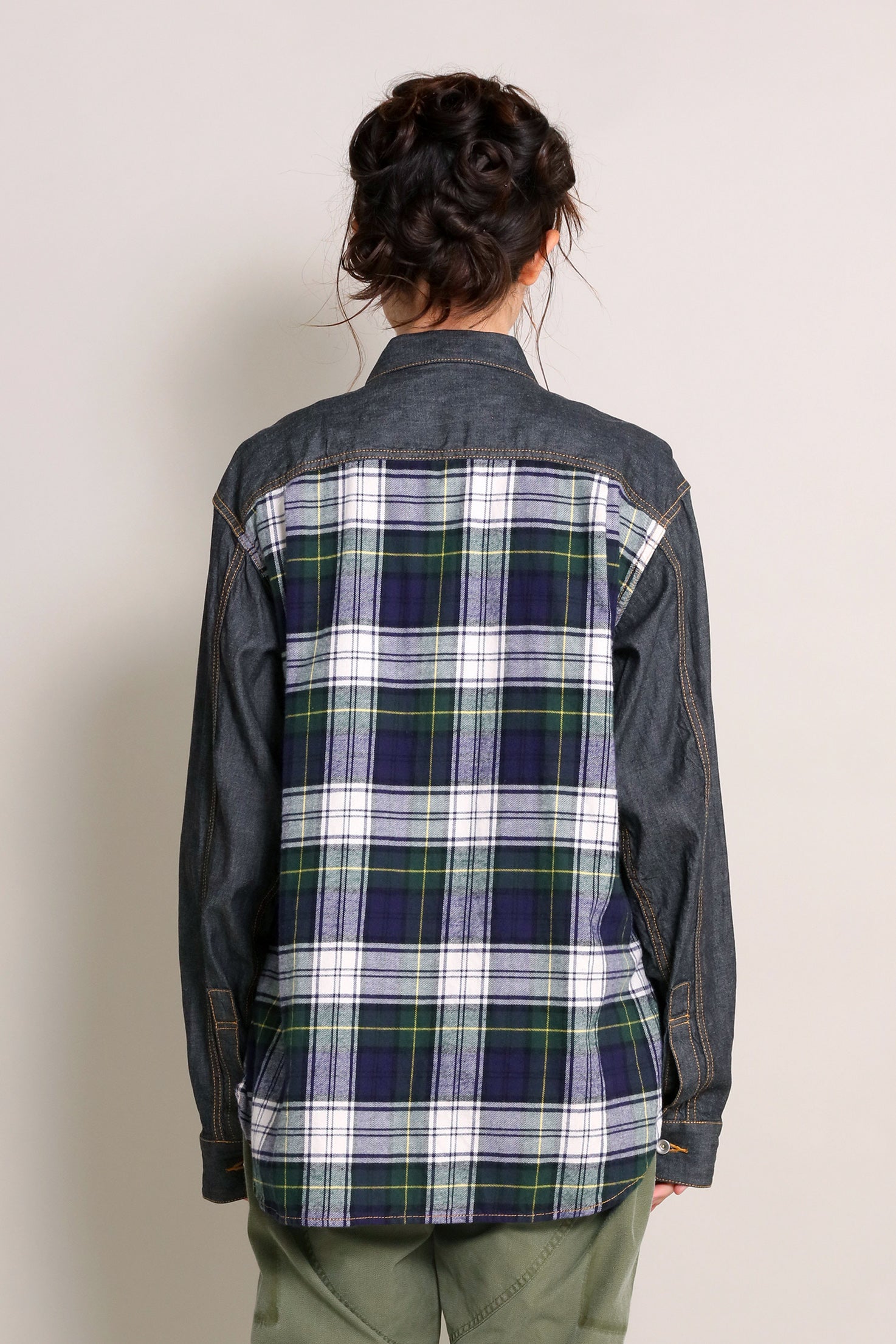 ・風合いのあるデニム×タータンチェック