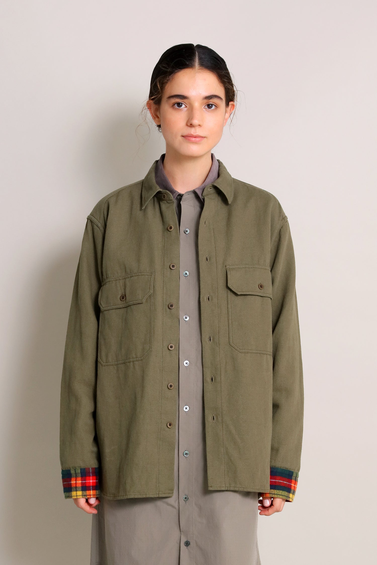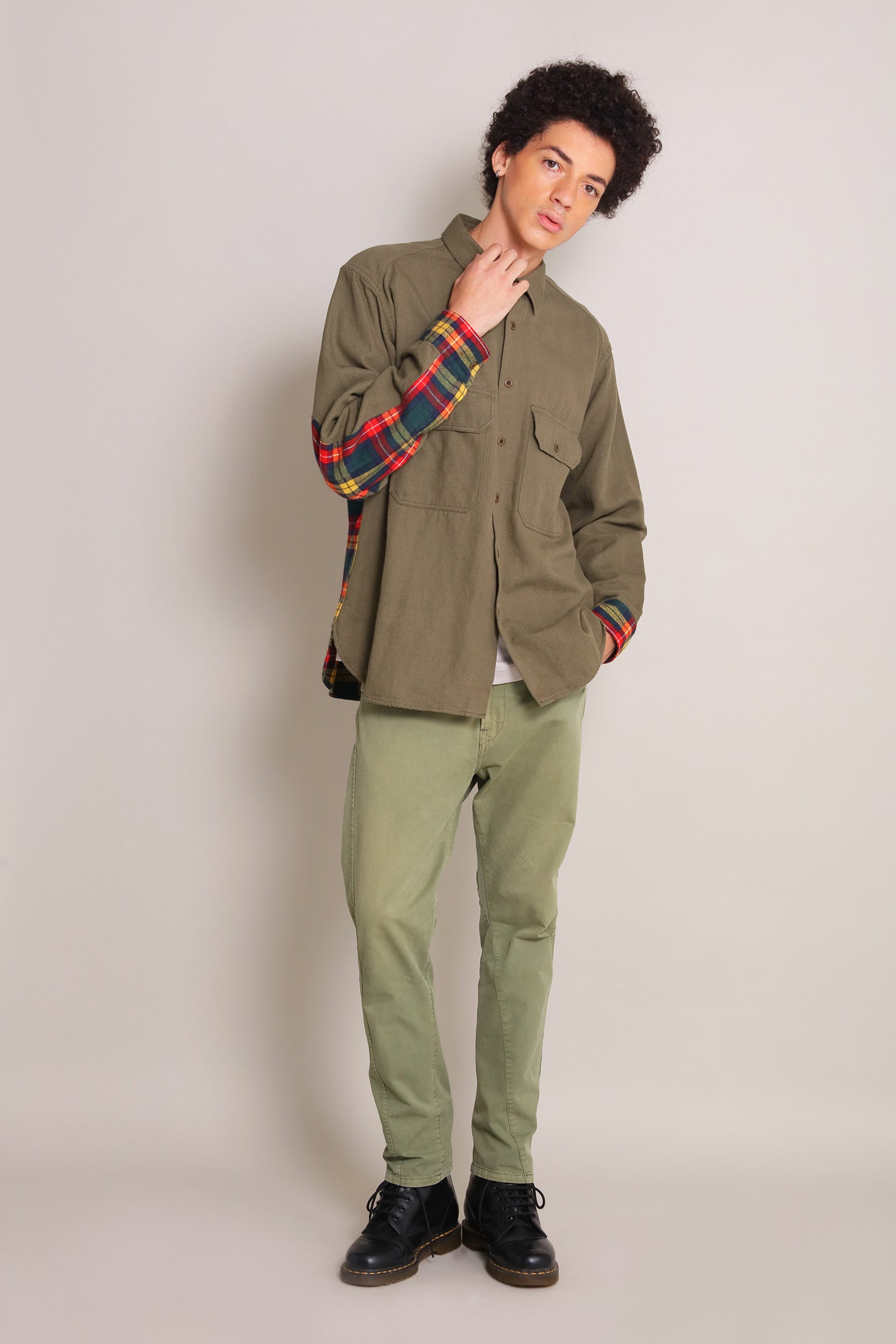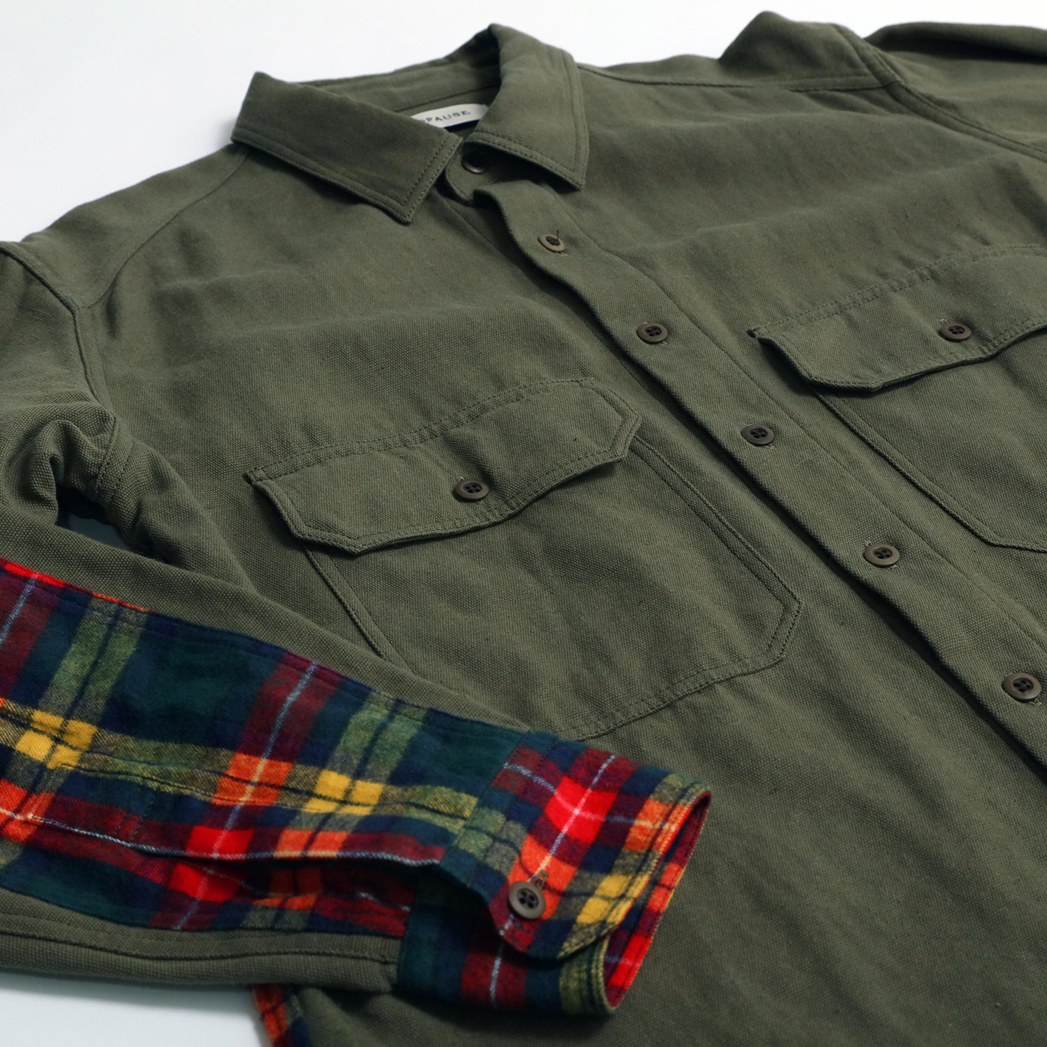 ワークウェアへのオマージュから生まれた「WORKERS カーキ」は、重心を落とした大きめのポケット、コットンリネンウールのオックスフォードと手触りのいいタータンチェックがポイント。3シーズン着られるシャツジャケットです。