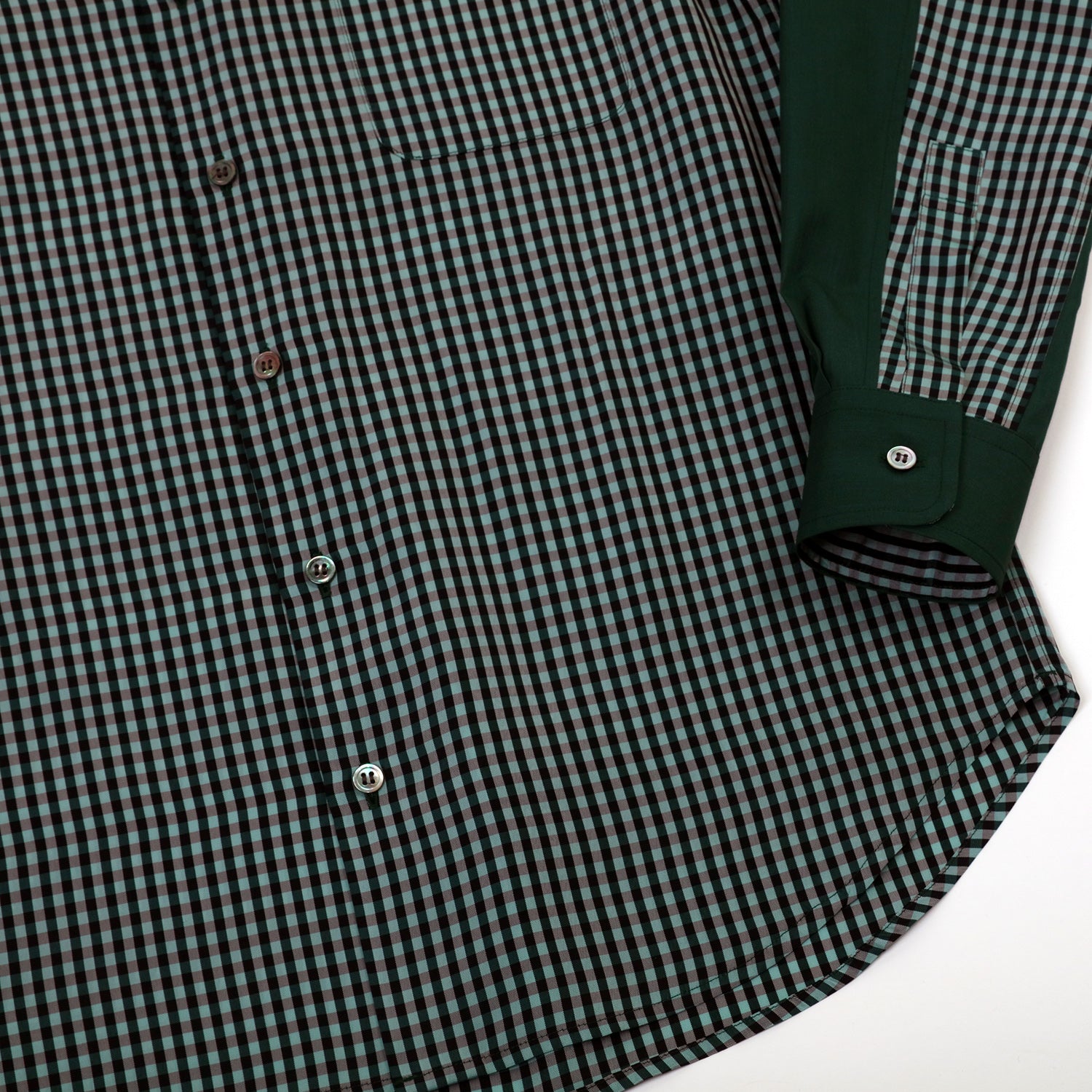 2種類の異なる生地を使ったギンガムチェックのシャツです。上質なキュプラとコットンポリエステルの掛け合わせは肌ざわりがよく、フォーマルにもカジュアルにもご着用いただけます。