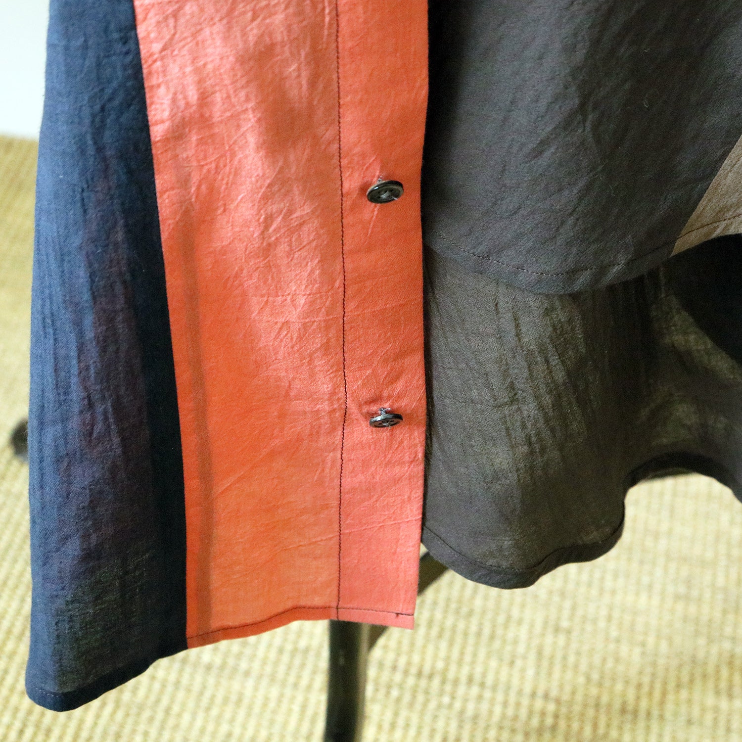 まるで夜空のような、落ち着いた色合いのパッチワークシャツ。重さわずか96gと非常に軽く、ふんわりとした質感なので、暑い夏でも快適に過ごせます。
