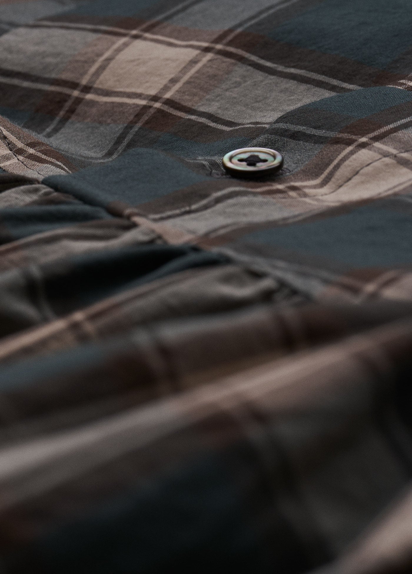 生地は表面のシワ感が心地いい上質なコットン素材。肌ざわりがよく、くしゃっとした質感は見た目も着心地も抜群。洗いざらしでアイロンなしでも着られて、面倒なメンテナンスもいりません。ボタンは、滑りにくくとめやすい貝ボタンを使用しています。