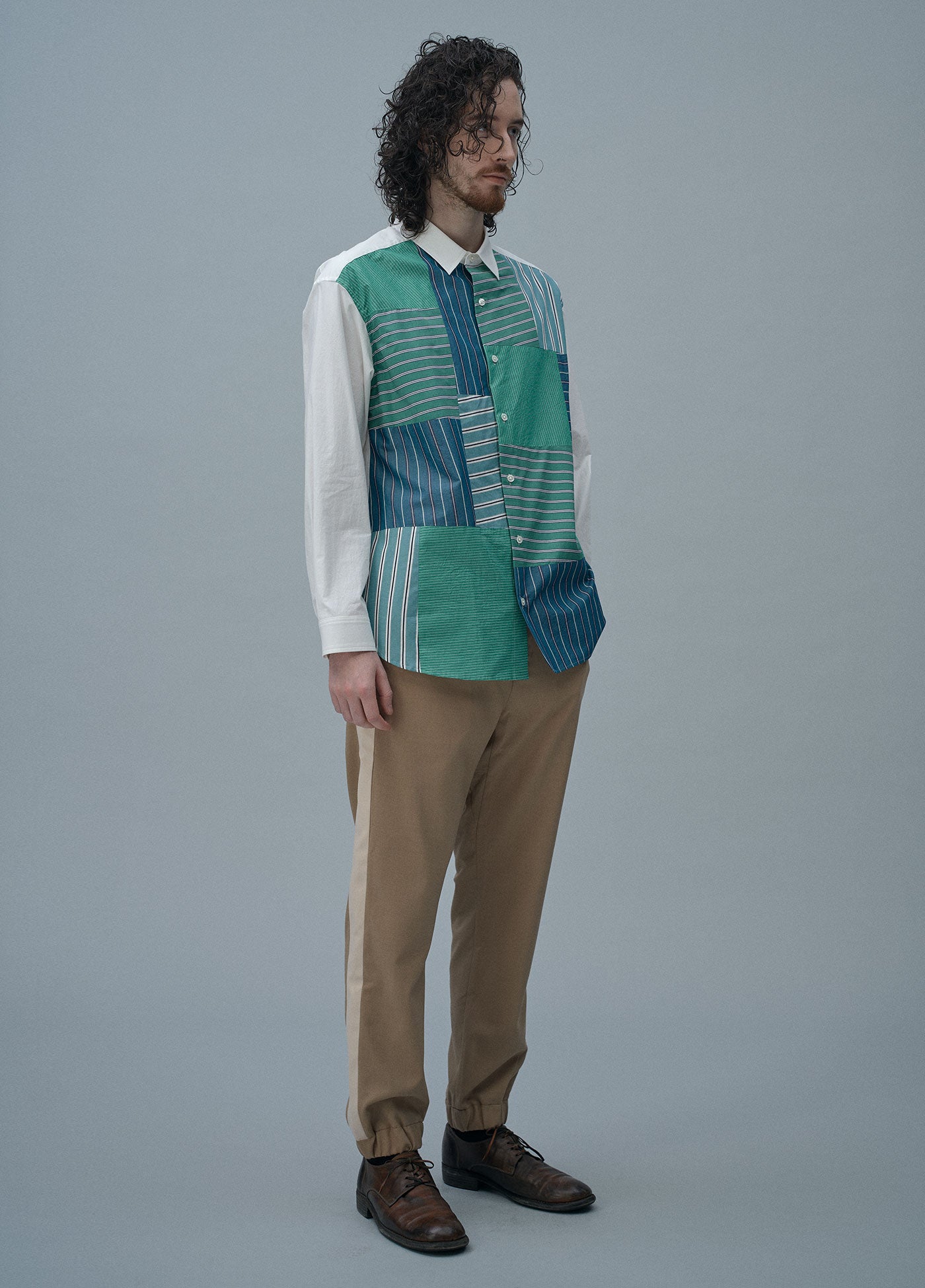 パッチワークとは、異なる素材の邂逅によって、新たな価値を生むための手段。デッドストック生地やハギレなども生かし、プロダクトとしての存在感を大切に、自由で楽しいパッチワークシャツをお届けします。