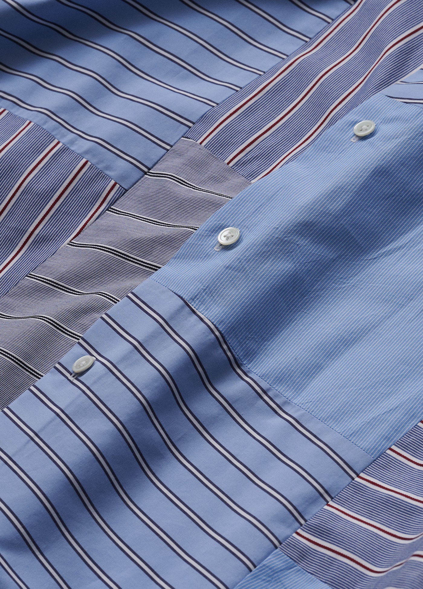 パッチワークとは、異なる素材の邂逅によって、新たな価値を生むための手段。デッドストック生地やハギレなども生かし、プロダクトとしての存在感を大切に、自由で楽しいパッチワークシャツをお届けします。