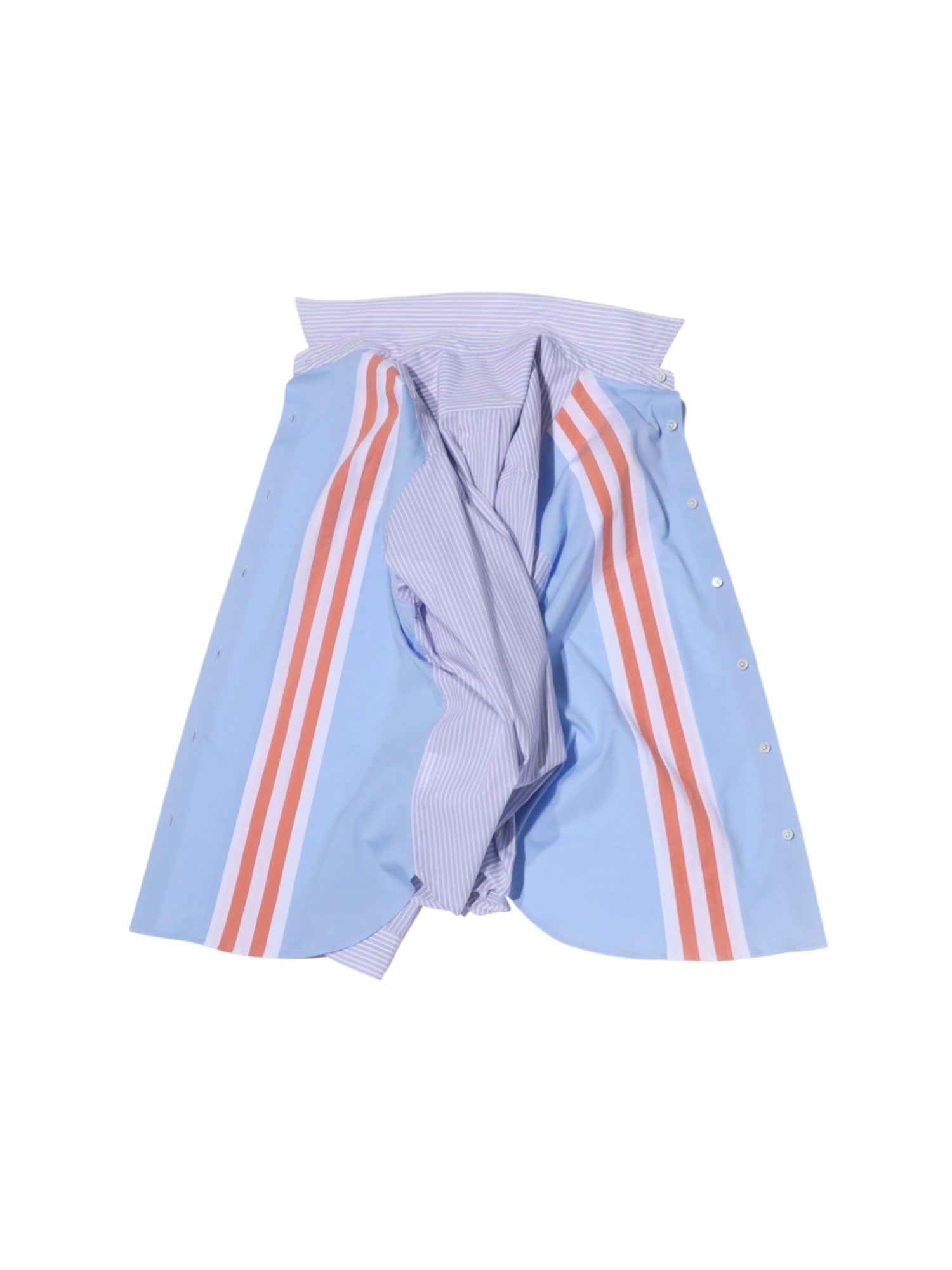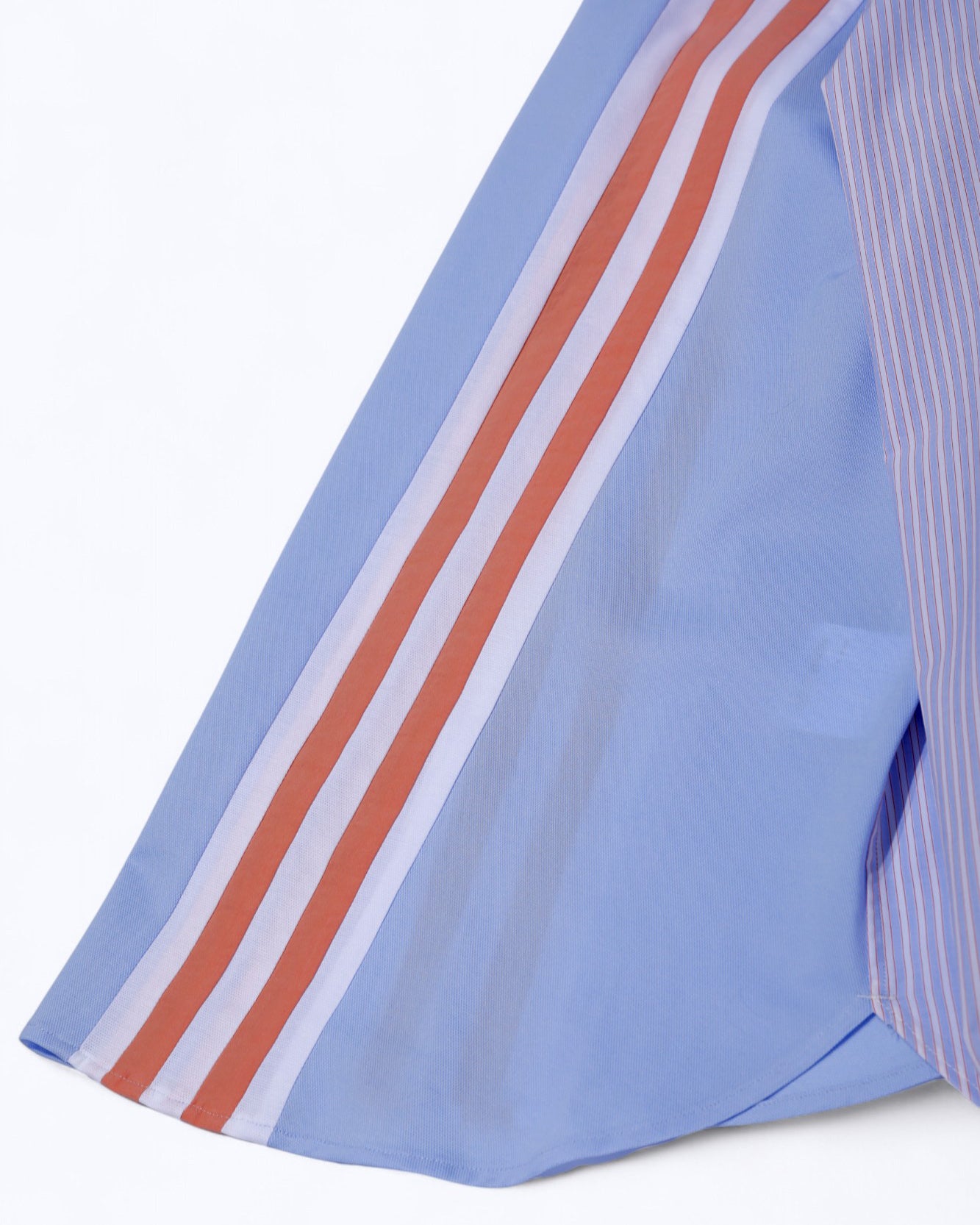 シャツ生地と同じストライプをパッチワークにして前身頃に施しました。