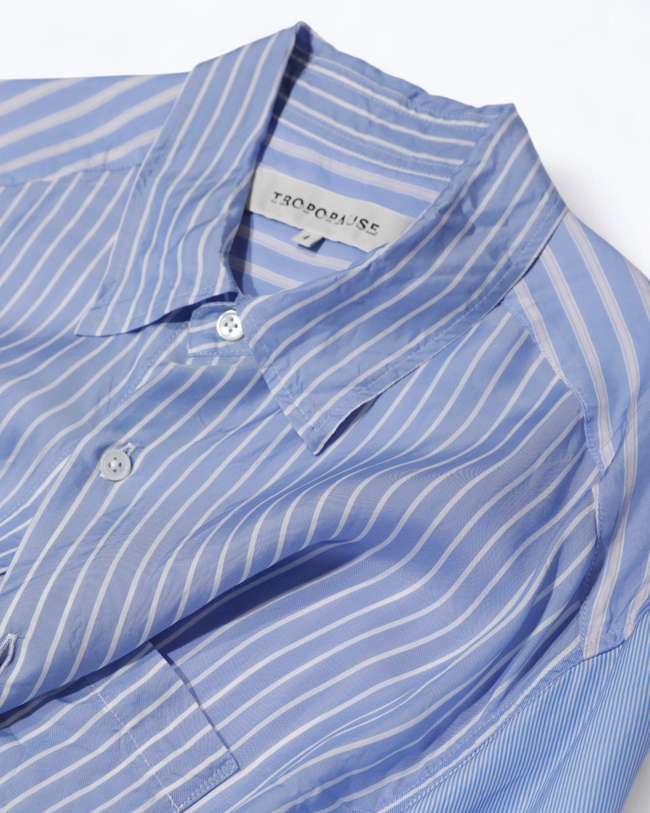 パッチワークとは、異なる素材の邂逅によって、新たな価値を生むための手段。デッドストック生地やハギレなども生かし、プロダクトとしての存在感を大切に、自由で楽しいパッチワークシャツをお届けします。
