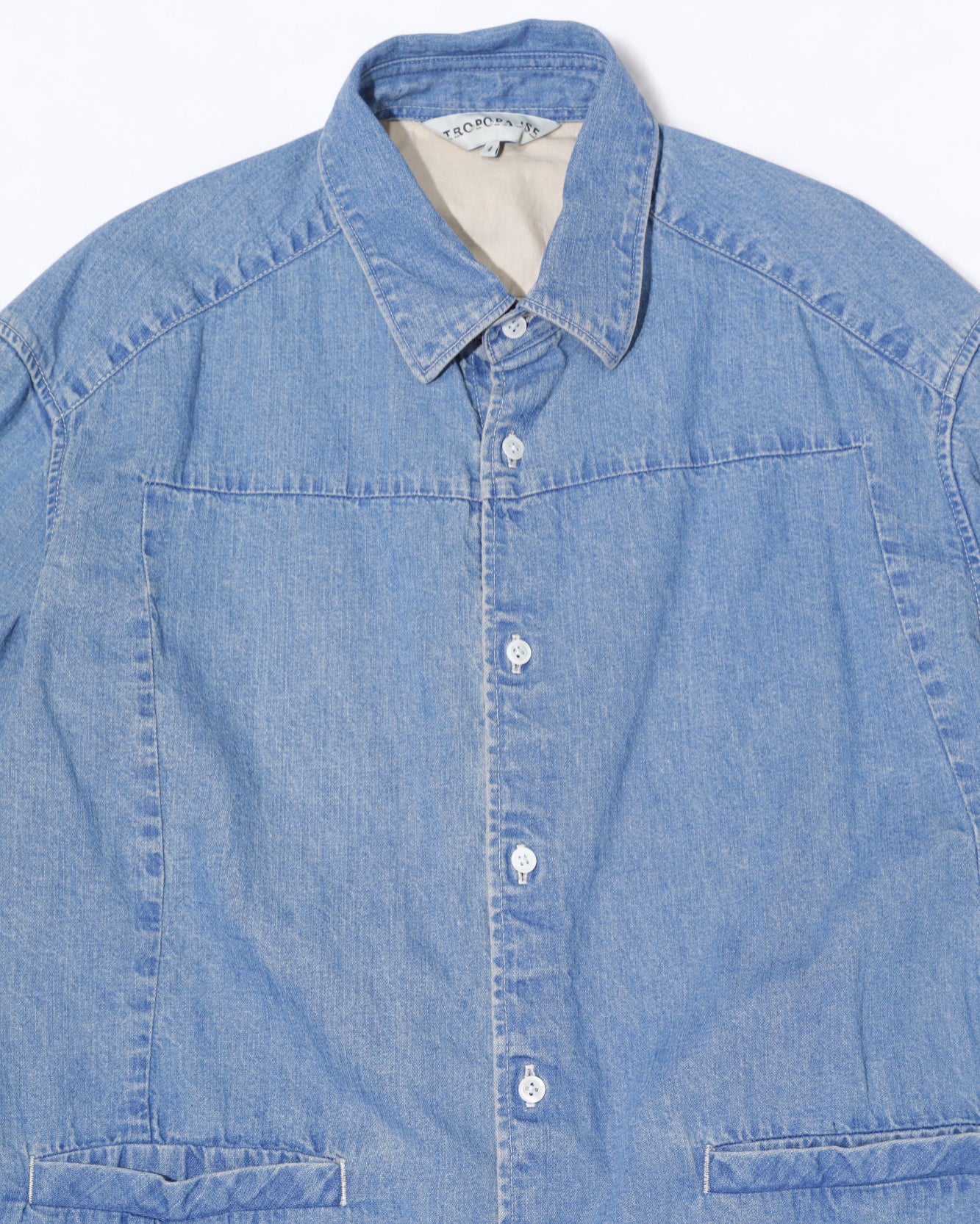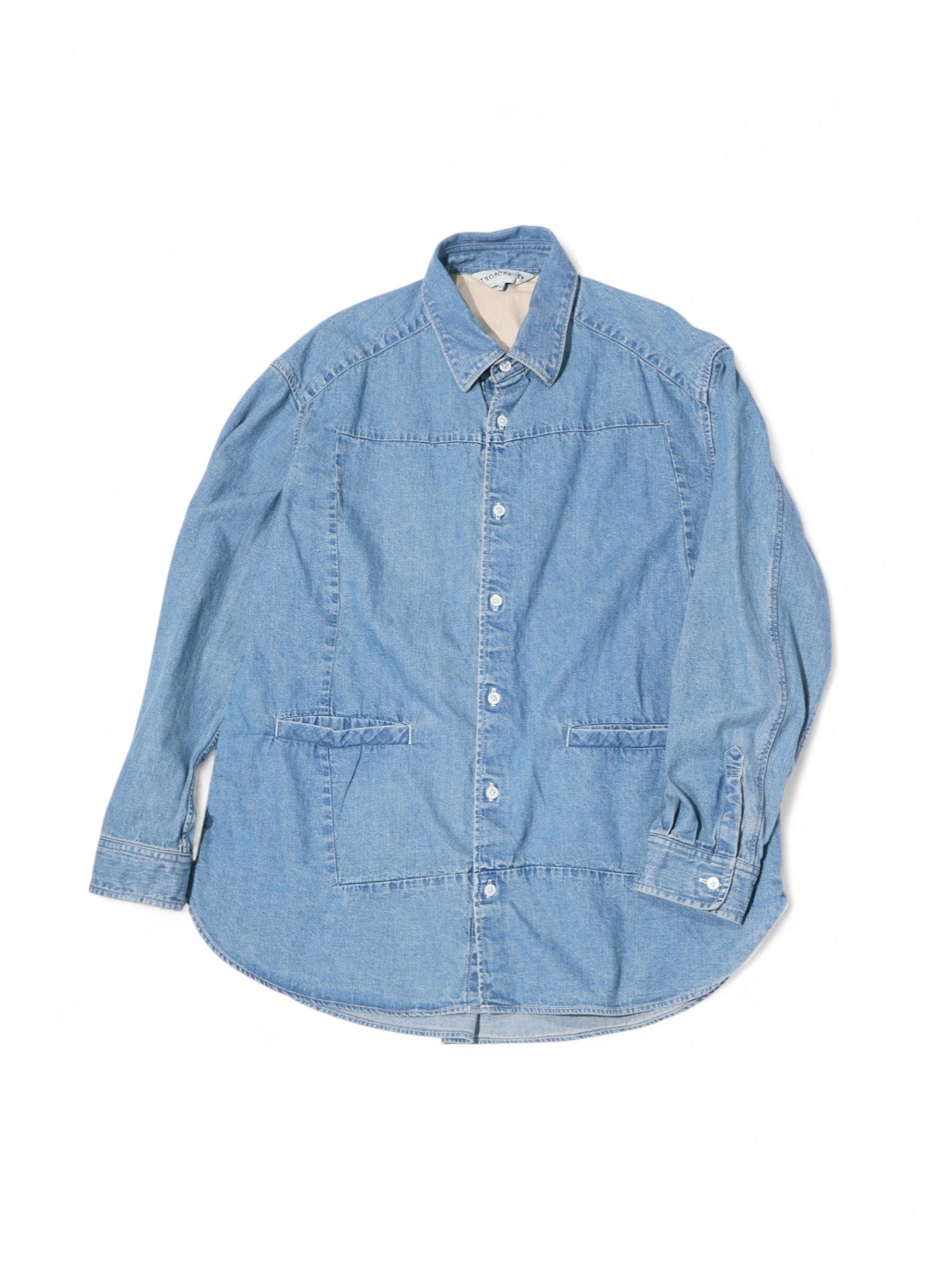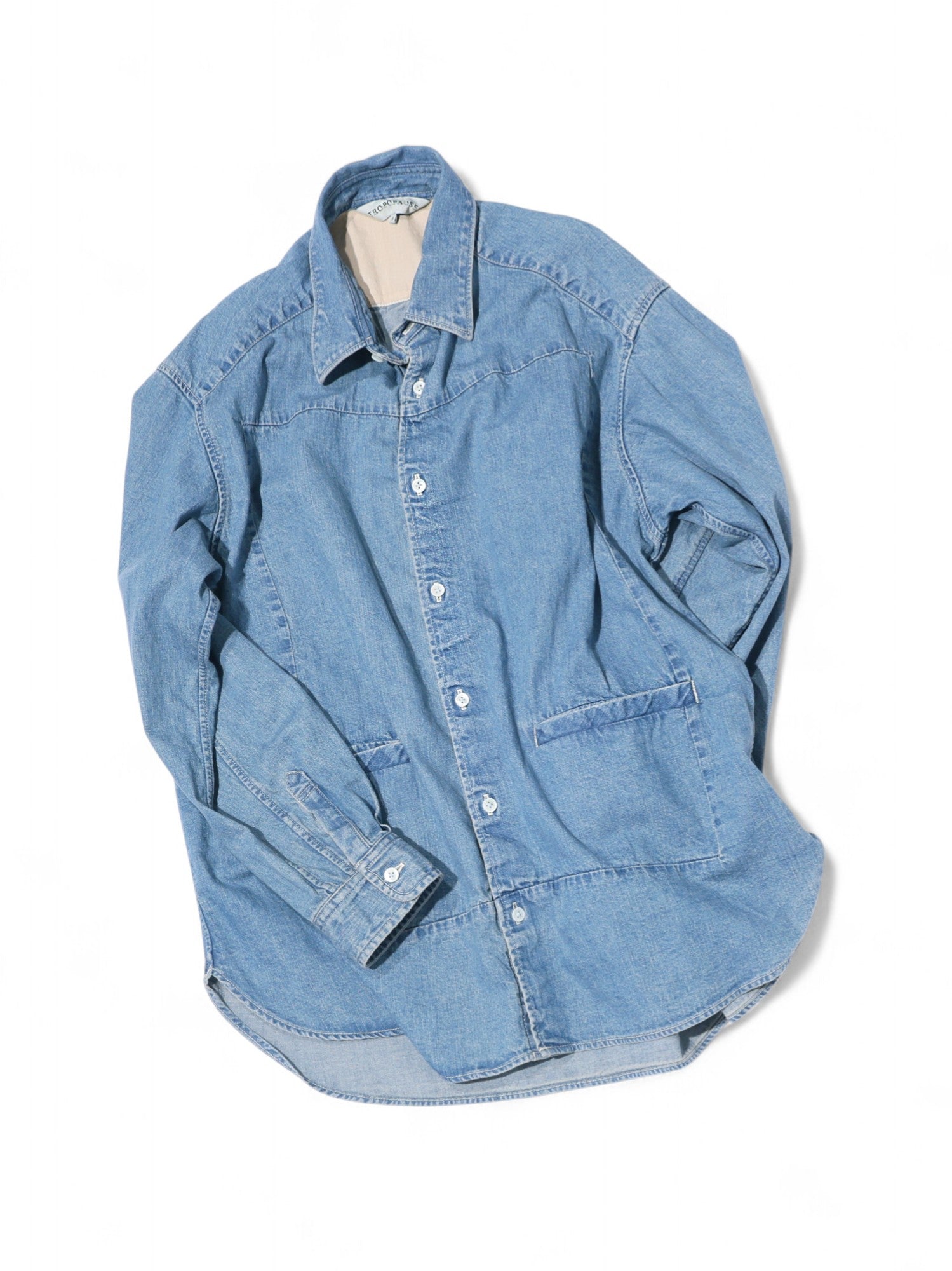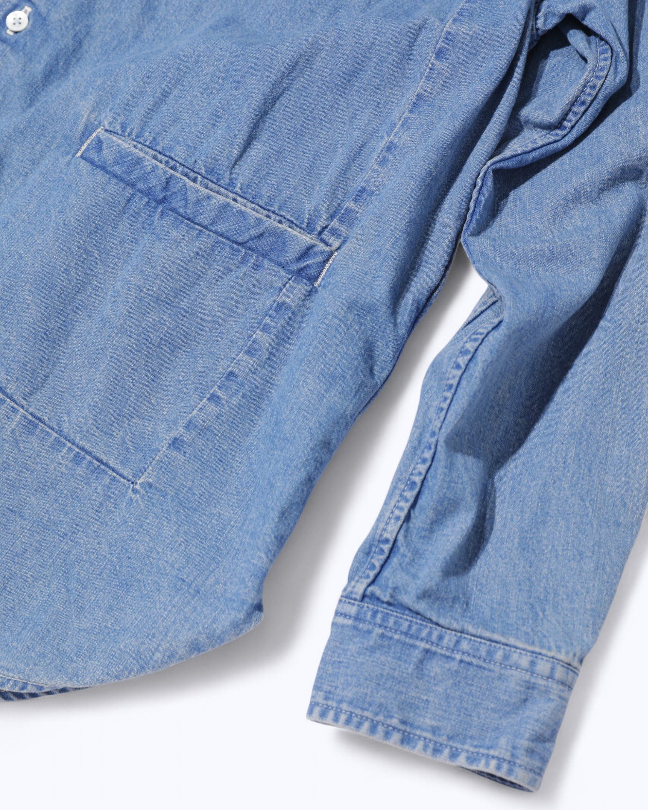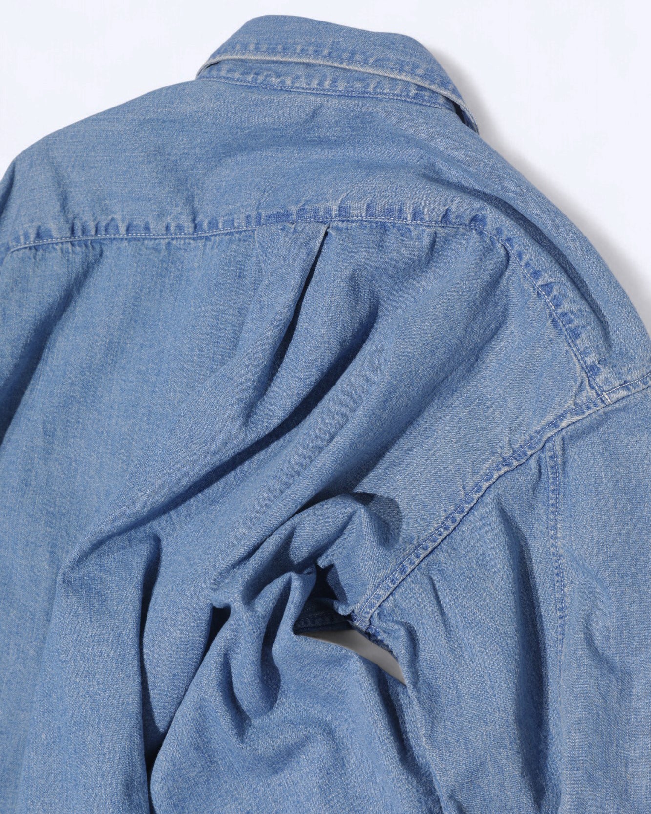 ドレスシャツ仕様の本格8ozムラ糸デニムシャツ。
