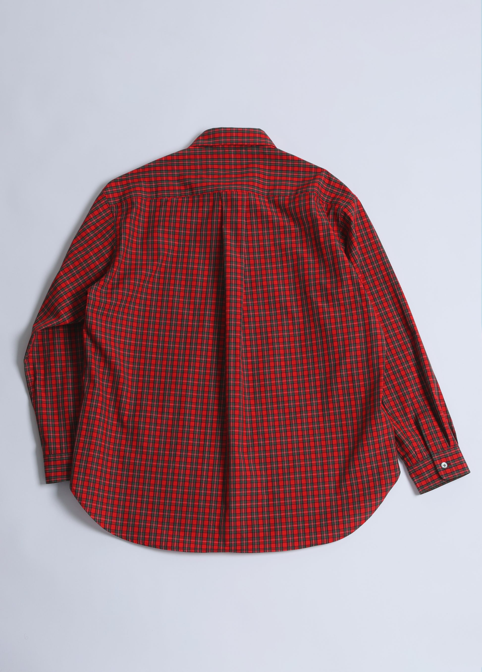 タータンチェックの生地は、シャツ地の産地として名高い兵庫県西脇市にて、100-120番の細い糸で丁寧に織られました。最高峰のヨーロッパ生地にも引けを取らない、しなやかで美しく光沢のある生地です。