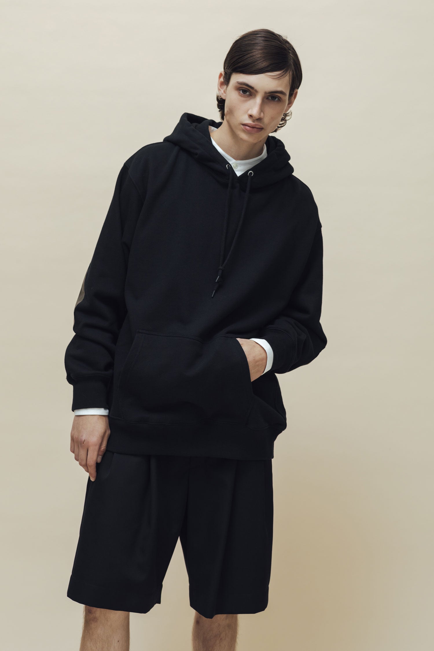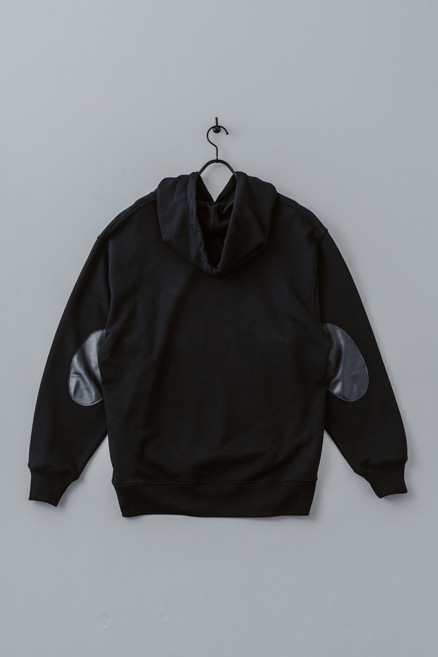 袖には、ウォッシャブルレザーのエルボーパッチつき。カジュアルなアイテムながらも、大人っぽく着こなしていただけます。レザーですがお家で手洗いできるので、気負わず気軽に着られる点もおすすめ。肌寒い日に、リラックスタイムに、なにかと出番の多いフーディです。