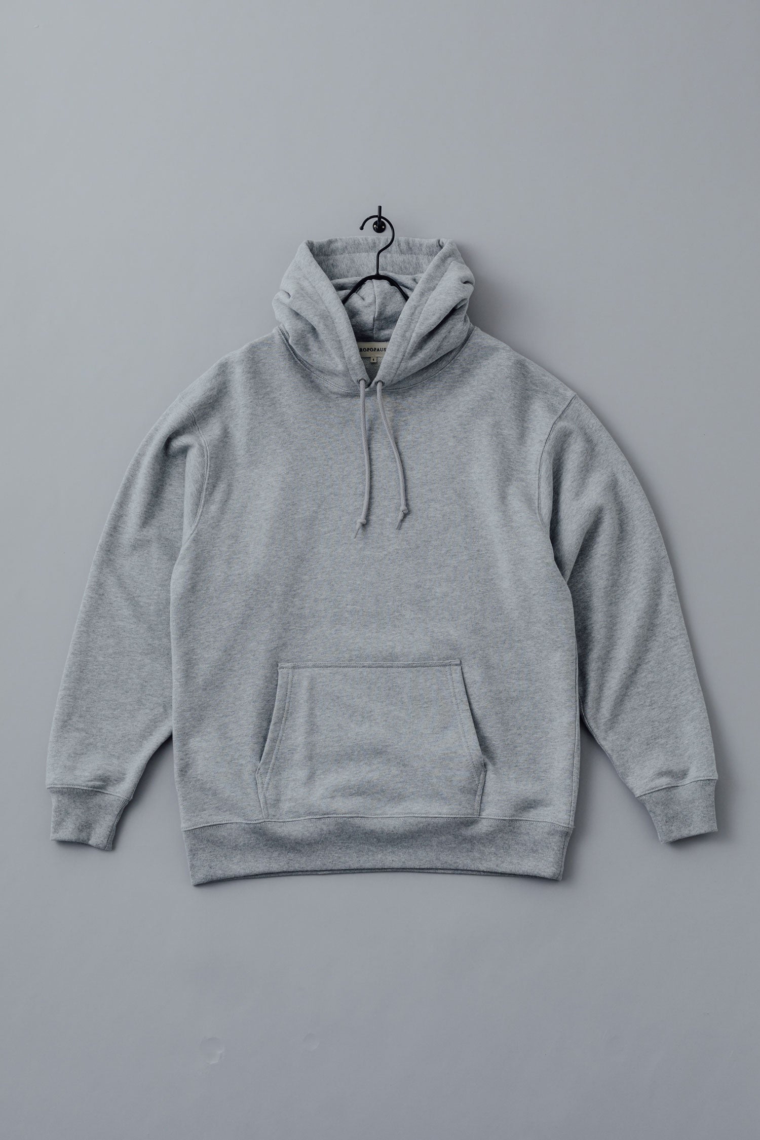 ヘビーウェイトの裏毛パイル(12.6oz)フーディです。たっぷりと生地を使用したビッグシルエットのフーディは、秋冬にぴったりの暖かさ。定番の杢グレーと黒の2色をご用意しています。