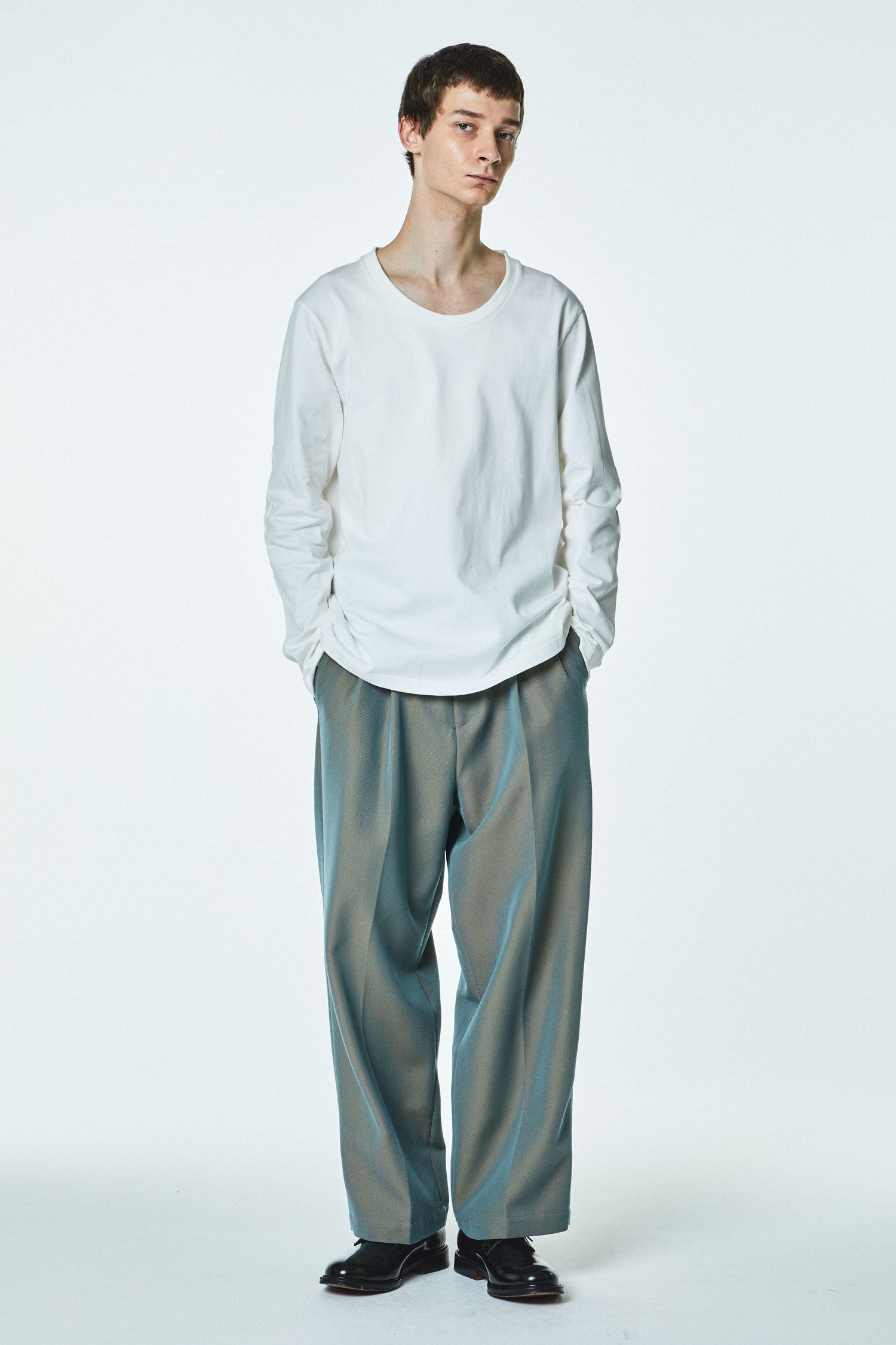 ヘビーウェイト天竺に、シャツ生地とフライスという3素材を組み合わせたオリジナルTシャツ。素材の持つ色味がわずかに異なることで生まれる繊細なグラデーション。カラーによっても色差があり、それぞれに独自の魅力があります。
