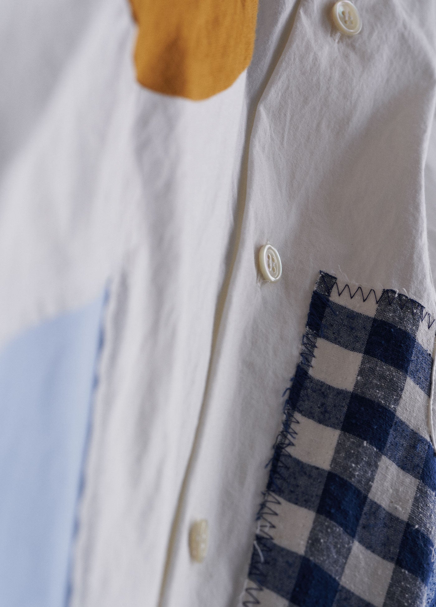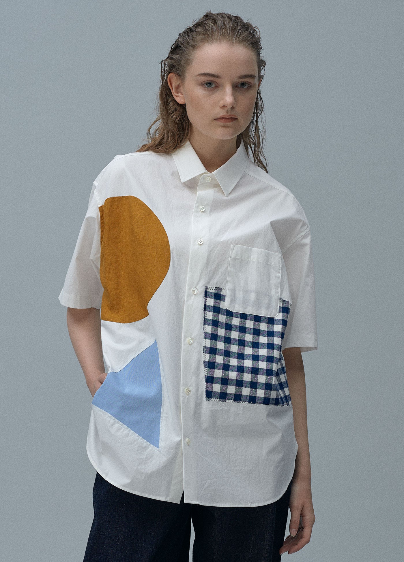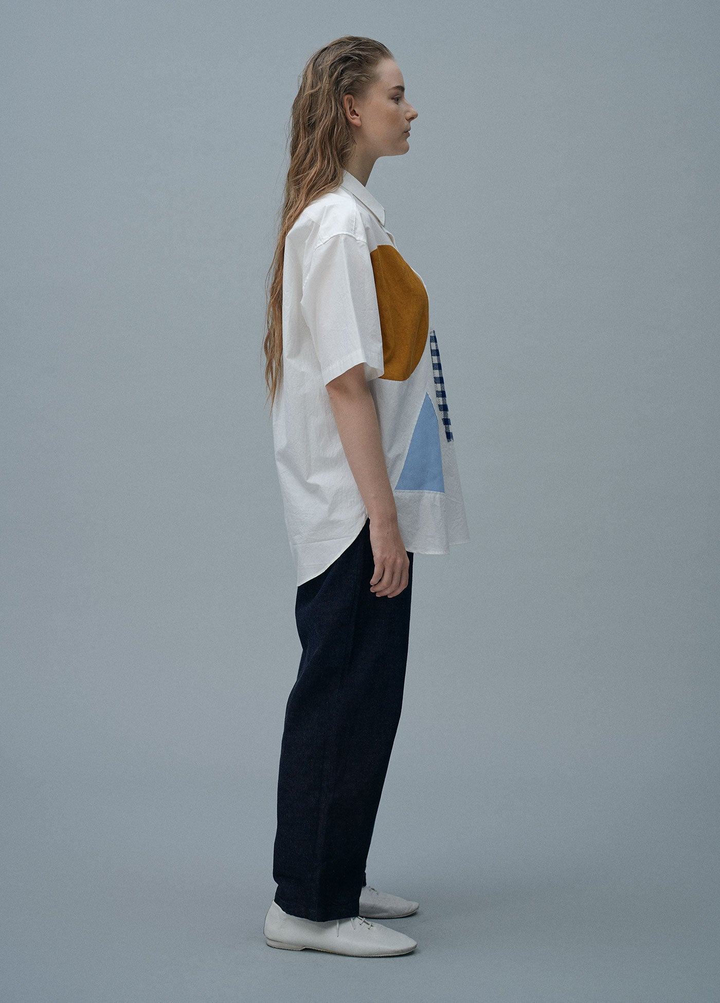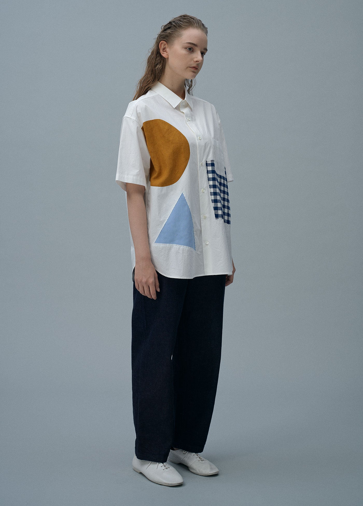 日本の暑い夏を軽やかに乗り切る半袖シャツ。インパクトのあるアシンメトリーなデザインながらも、トーンを抑えた色合いと大きめのモチーフのおかげで、どこか品のある印象に。1枚あるとコーディネートの主役になるので、ラフなスタイルが増えがちな夏に重宝します。