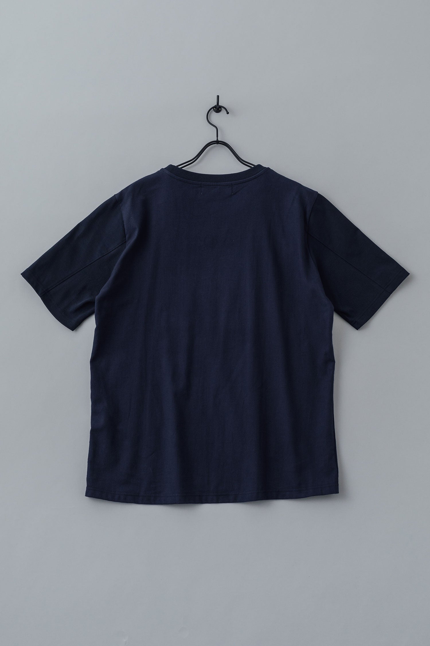 ヘビーウェイト天竺に、シャツ生地とフライスという3素材を組み合わせたオリジナルTシャツ。素材の持つ色味がわずかに異なることで生まれる繊細なグラデーション。カラーによっても色差があり、それぞれに独自の魅力があります。